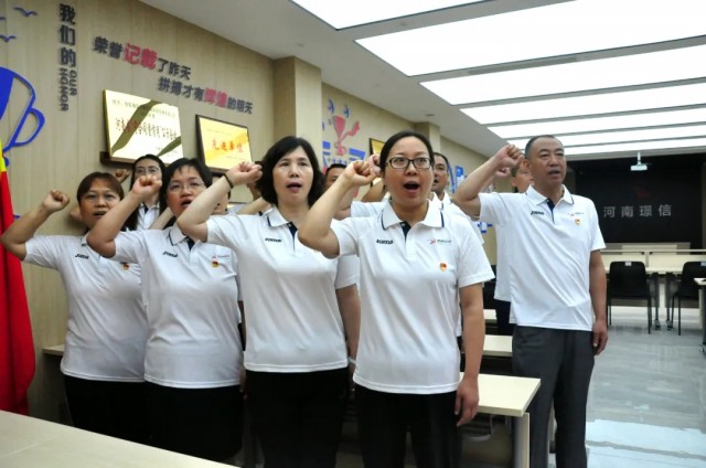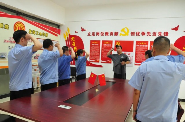 在董小輝的帶領(lǐng)下,全體黨員莊嚴(yán)舉起右手,重溫入黨誓詞,鏗鏘有力的聲音響徹云霄,心中的理想和信念更加堅(jiān)定。
