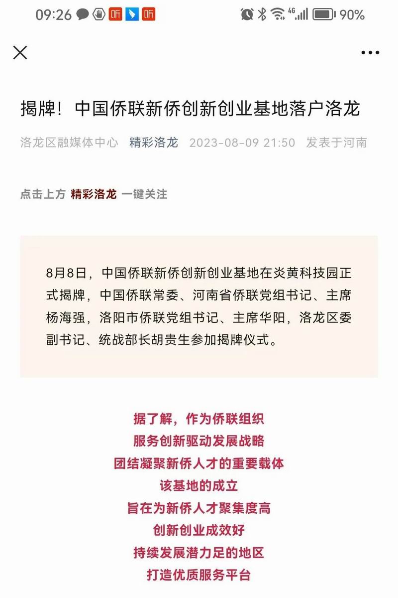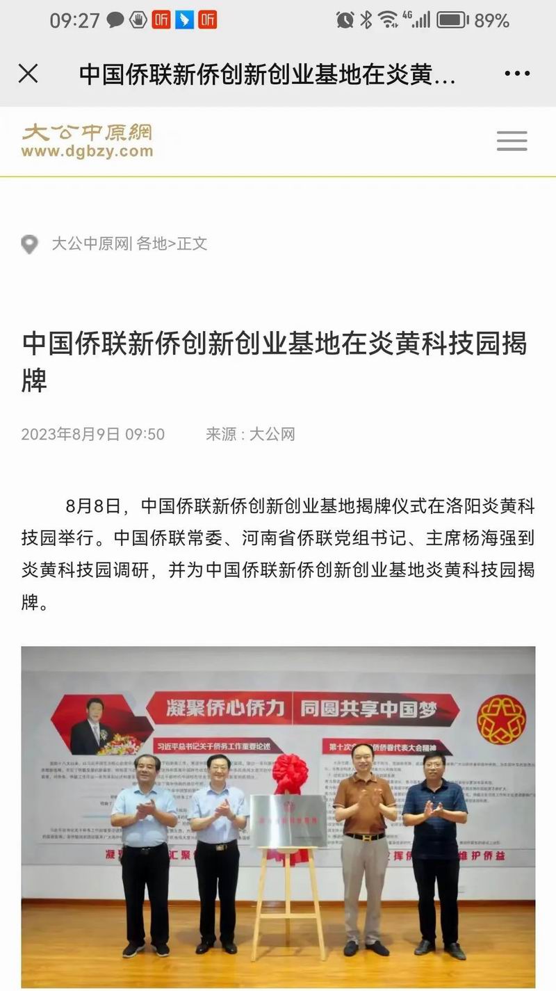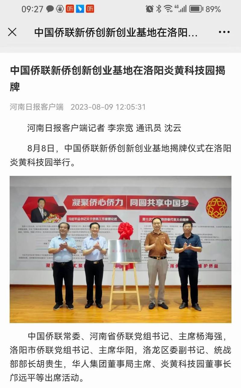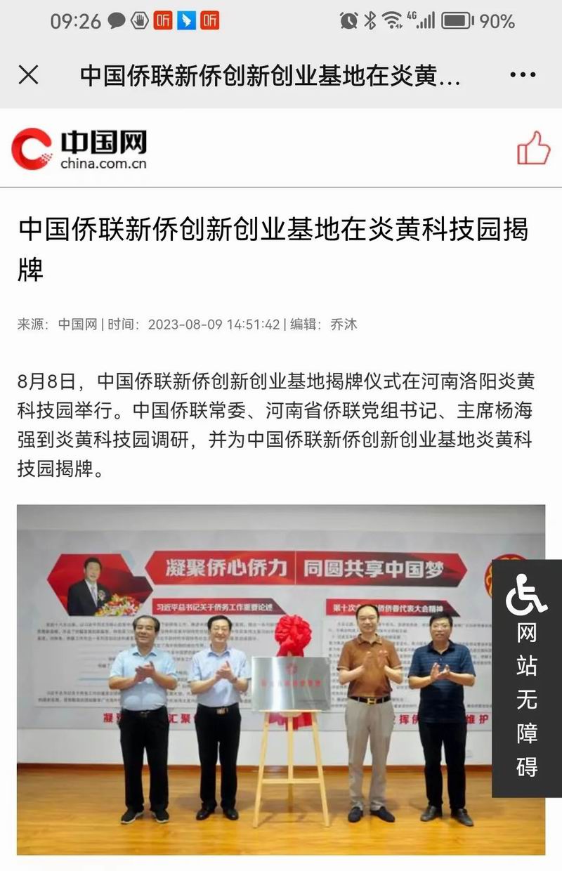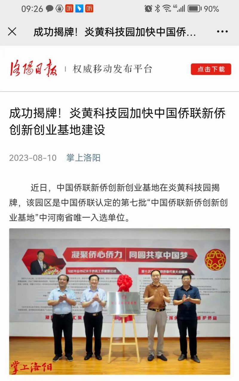 位于洛陽市洛龍區(qū)的炎黃科技園,以為僑服務(wù)為宗旨,在園區(qū)打造關(guān)心、愛心、聯(lián)心、貼心和舒心的“為僑服務(wù)站”,受到各級僑聯(lián)組織的肯定和贊揚,被中國僑聯(lián)認定為“新僑創(chuàng)新創(chuàng)業(yè)基地”。近日,中國僑聯(lián)常委、河南省僑聯(lián)黨組書記、主席楊海強到炎黃科技園調(diào)研指導,為中國僑聯(lián)新僑創(chuàng)新創(chuàng)業(yè)基地炎黃科技園揭牌,引起了廣泛的關(guān)注。